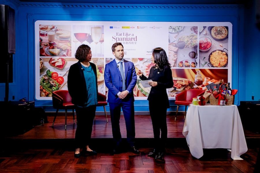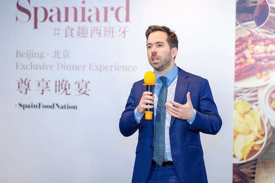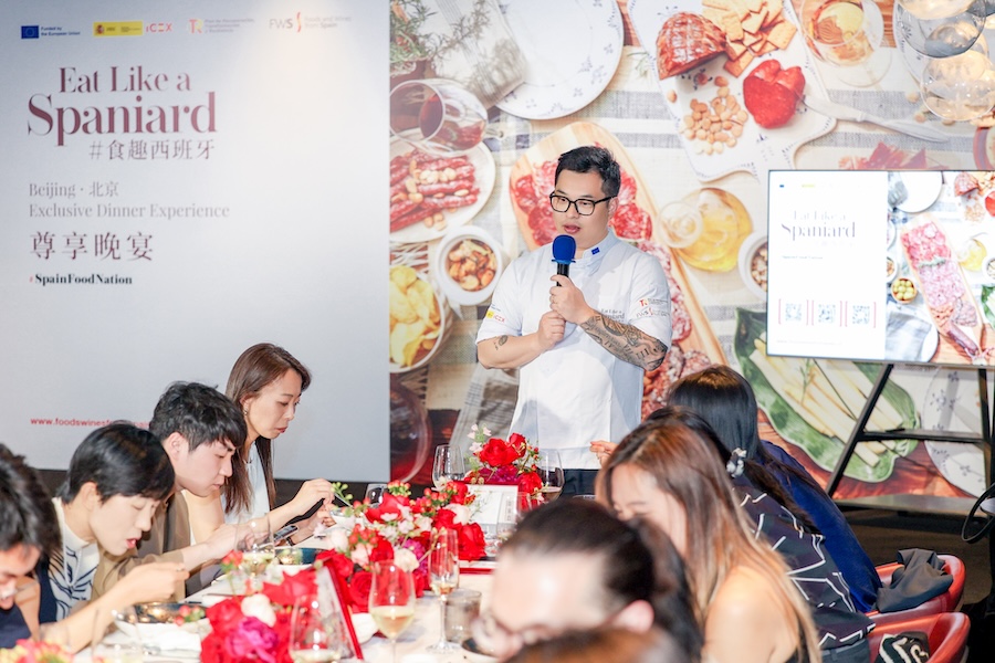 西班牙驻华大使馆经济商务处经济商务参赞贺明远先生(Mr. Ernesto Negredo)、农业、食品与饮品部负责人陆一鸣先生(Mr. Ruben Martinez)、张婷玉女士(Ms. Yolanda Zhang)以及易为雅女士(Ms. Victoria Iracheta)出席了本次晚宴。贺明远先生发表了精彩致辞。他特别指出,中西美食的融合不仅是食材上的互补,更是两种深厚烹饪哲学的交汇,这种跨越国界的创新能够打破饮食壁垒,让西班牙的优质物产以更亲切的方式走上中国消费者的餐桌。