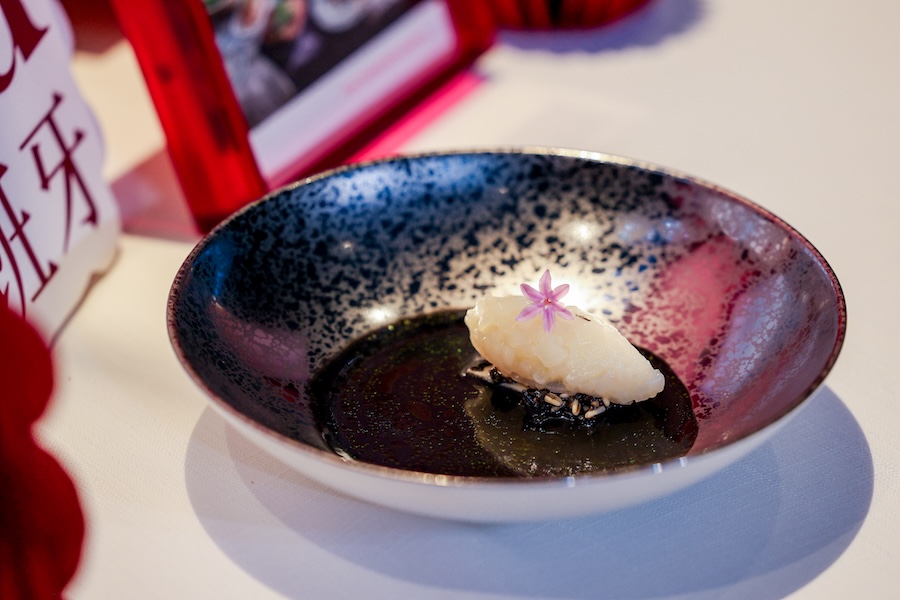 随后,北京地区品牌大使朱文渊向在座宾客们分享了定制菜单的设计巧思。他针对中国食客对食物温度与口感的偏好,进行了细腻的本地化烹饪调整。例如,在西班牙红虾塔帕斯的呈现上,他将红虾的海洋鲜甜与温热酥脆的面包底座结合,既保留了地中海经典的小食文化,又迎合了国人对温热口感的钟爱;而在墨鱼汁烩东山岛鱿鱼这道菜中,他以醇厚鲜香的墨鱼汁作为底味,慢火煨煮肉质肥厚的本土优质东山岛鱿鱼,不仅激发出层次丰富的海味,更打造出软糯温润贴合中国胃的体验。