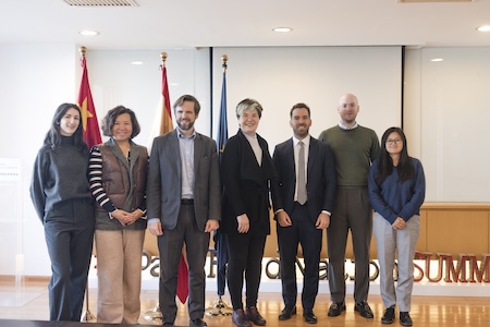 不久前的10月27日,西班牙大使馆经济商务处北京办事处接待了赵凤仪老师的来访,她此次造访的主要目的是作为SWS课程的合作学校签备忘录。ICEX(西班牙贸发局)授权西班牙驻华大使馆经济商务处一等经济商务参赞Alfonso Noriega方少龙先生作为签署人,同龙凤美酒联合创始人、葡萄酒大师赵凤仪Fongyee Walker MW共同签署了合作备忘录。经济商务参赞贺明远先生和来自经济商务处的张婷玉女士及其他工作人员共同见证了本次合作备忘录的签署。此次暂短的会面非常愉快,凤仪老师分享了授课的感受、学生们的反馈,并收到了经济商务处准备的“意外”礼物,不难猜到,是美妙的西班牙火腿!