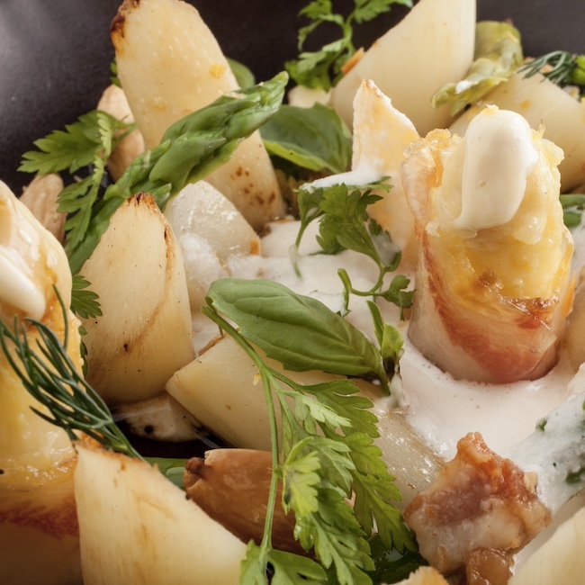 - 地理标志保护纳瓦拉芦笋:将切好的白芦笋与对半切的樱桃番茄、雪利酒醋和特级初榨橄榄油拌匀,制作成美味又快速的沙拉。
