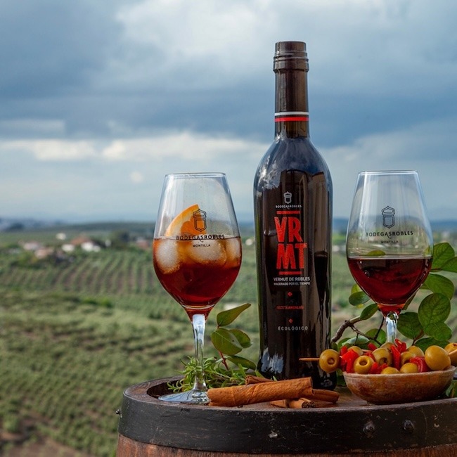 在蒙蒂利亚(Montilla,在安达卢西亚的科尔多瓦省),罗伯莱斯酒庄(Bodegas Robles)与主厨帕科·莫拉莱斯(Paco Morales)合作的VRMT酒款,堪称最具艺术感的一款味美思。VRMT Robles以陈酿八年的有机奥罗索(oloroso)雪莉酒为基酒,而其独特之处在于以植物对安达卢西亚美食风味做出诠释。